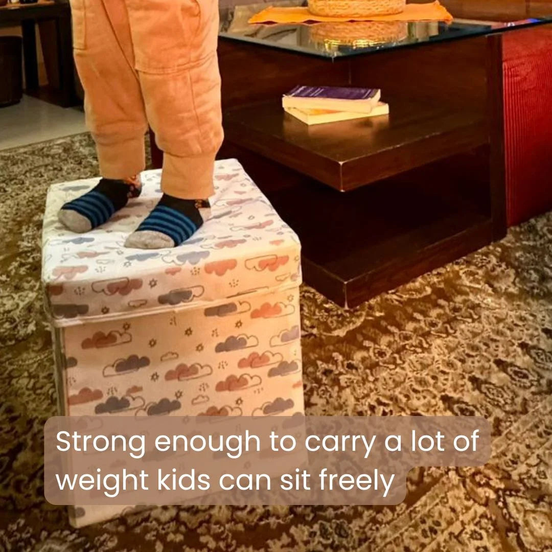 Qoolish 2 in 1 Kids Ottoman: Soft Cushioned Storage Stool For Toys, Clothes & Essentials | Available in 2 colors